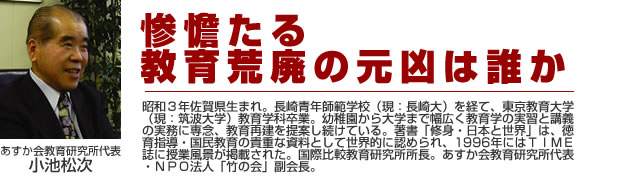 日本の教育崩壊の元凶として、講演会では10項目を挙げていますが、ここでは紙面の都合で5つだけ簡単に言及します。