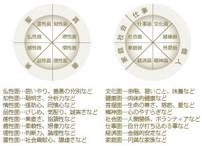 今最優先されている経済だけでが幸せではなく、「8つの生活づくり」として、経済・文化・精神・家族・仕事・社会・家庭・菩提。